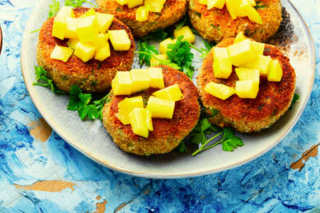 Diet vegan quinoa and mango cutlets, vegetarian food