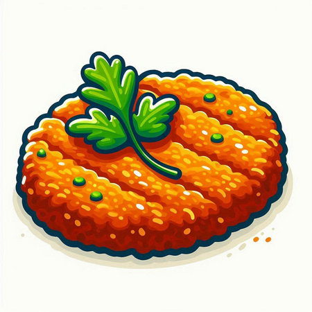 Illustration of a cutlet with parsley on a white background