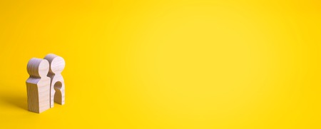 Wooden figures of a man and a woman with a void inside the body in the form of a child. Infertility in a couple. Loss of a single child. Medical problems. The couple wants to have a baby. banner