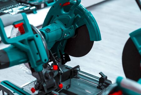 construction tool for grinding and cutting metal isolated with blur background of working person in workshop
