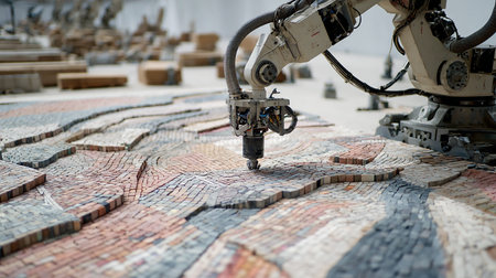 Fragment of a joint cutter on a brushed concrete surface.