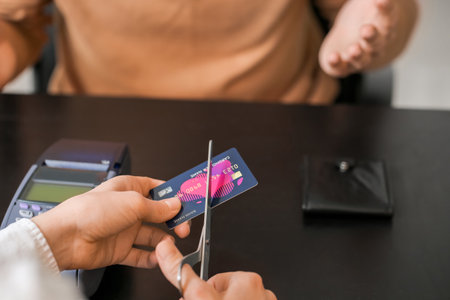 Hand cutting credit card with scissors on table?