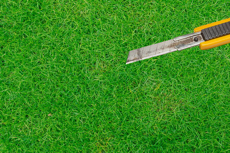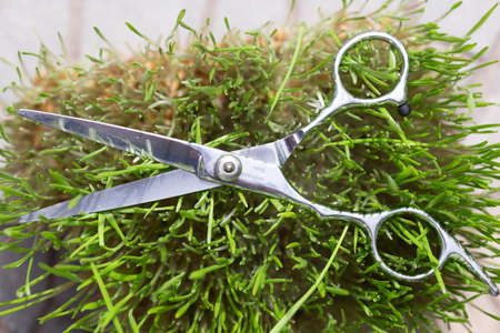 scissorscut grass with scissors to cut grass in the garden. on the grass