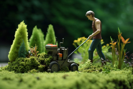soft blur gardener is using a lawn mower in public park take by lens blur