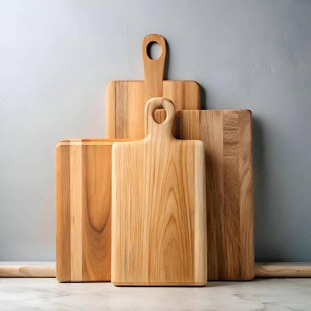 A stunning set of wooden cutting boards. perfect for showcasing your culinary creations or adding a rustic touch to your kitchen decor.