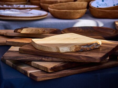 Hand made wooden dishes - cutting boards. Eco crockery. Fair - an exhibition of folk craftsmen open air.