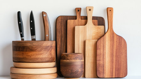 Explore a stunning collection of wooden kitchen utensils and cutting boards, showcasing craftsmanship and aesthetic beauty perfect for any culinary space.
