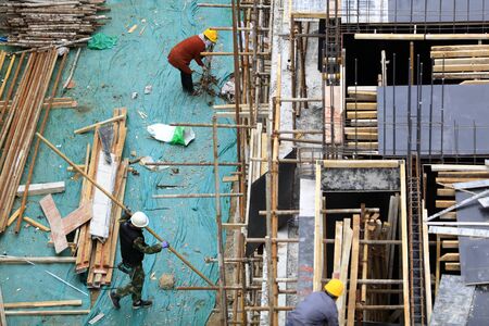 Workers busy with construction. Building a house in Kuala Lumpur, Malaysia