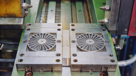 A Detailed and CloseUp Image Depicting a Computer Heat Sink Located on a Wooden Surface