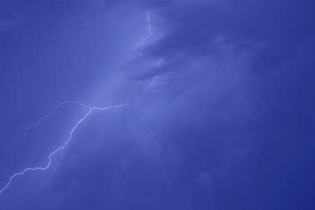 Beautiful lightning on a dark blue sky during a thunderstorm