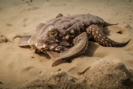 dusky octopus kraken monster creeping along sandy seabed, created with generative ai