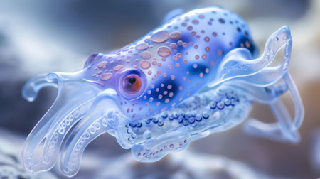 A mesmerizing close-up view of a vibrant squid, showcasing its delicate features and graceful movement in the tranquil blue ocean environment.