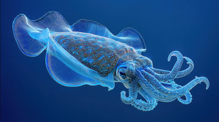 Squid Gliding in the Deep Blue. A glittering squid, effortlessly navigating the marine depths.