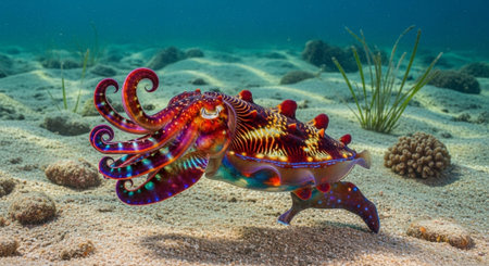 Vibrant cuttlefish in its natural habitat, ideal for educational marine life content
