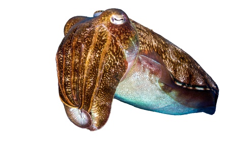 Cuttlefish on a black background and is marine molluscs of the order Sepiida. Same family as squids, octopuses, and nautiluses.