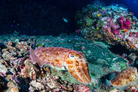Mating Cuttlefish on a tropical coral reef at dawn (Richelieu Rock, Thailand)