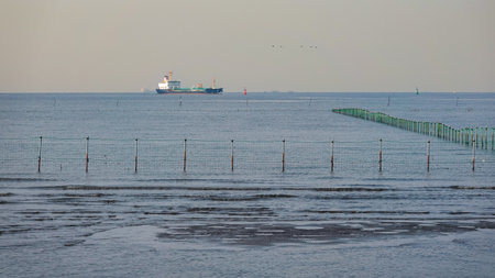 Spring morning Tidal flats of Funabashi Sanbanse Seaside Park (Funabashi City, Chiba Prefecture)