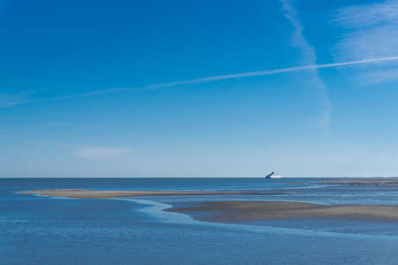 Ferry crossing the Wadden sea UNESCO world heritage to Wadden island Schiermonnikoog in The Netherlands