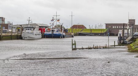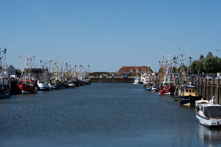 Fishing boats and shrimp boats in the old fishing port of Dorum-Neufeld. East Frisia in Lower Saxony in Germany