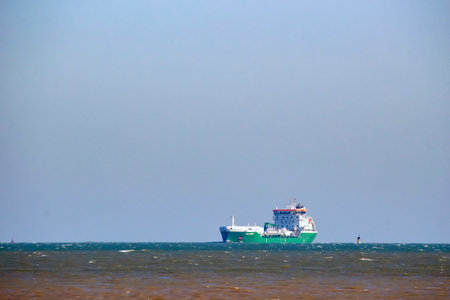 A container ship heading for the Port of Liverpool at crosby, Merseyside, UK.