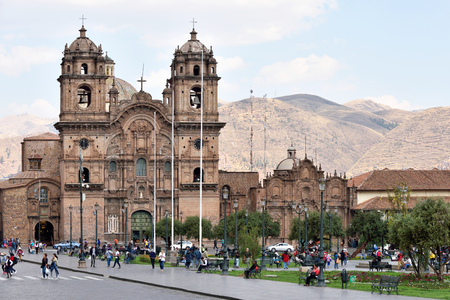 CUSCO PERU-MARCH 08, 2015: Plaza De Armas and Iglesia de la Compania, Cusco, Peru