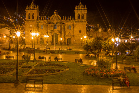 Cusco, Peru - May 22, 2016, Cathedral at Plaza de Armas square