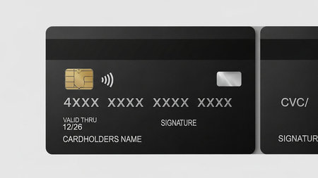 Three black credit cards. Plastic card. Contactless payment Plastic card. Credit card payment.