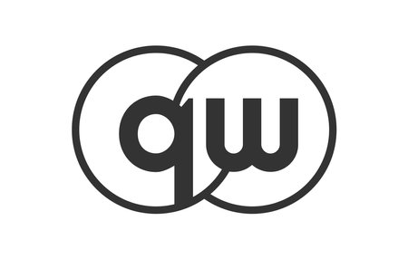 QW business company emblem with outline rounds and letters q w. Logo template of two merged circles for brand identity, logotype. Vector Infinity symbol and technology sign.