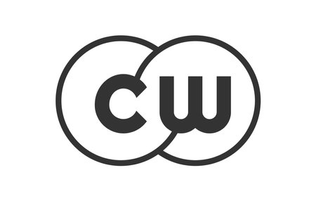 CW business company emblem with outline rounds and letters c w. Logo template of two merged circles for brand identity, logotype. Vector Infinity symbol and technology sign.