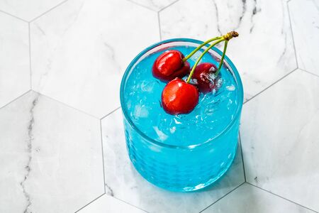 Blue Lagoon Cocktail with Cherries and Crushed Ice. Ready to Drink.