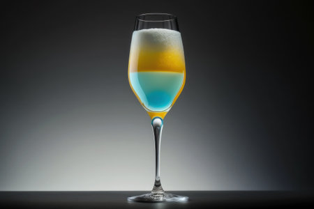 Stunning gradient cocktail in a wine glass, showcasing a mesmerizing transition from green to golden hues, perfect for elegant celebrations or trendy bar settings