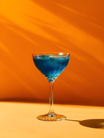 Navy Blue Summer Drink on an orange background with sunlight and shadows