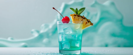 AI Generated. Refreshing Blue Tropical Drink with Cherry and Pineapple Slice