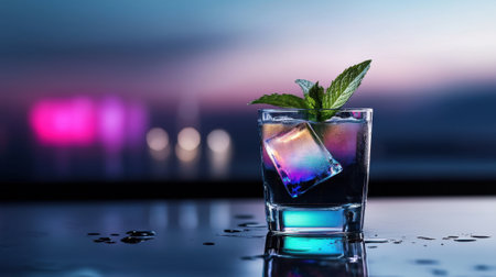 Refreshing sparkling water with ice cubes and mint leaves in a vibrant setting