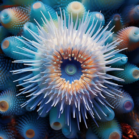 Immerse yourself in the breathtaking beauty of an underwater landscape, featuring the mesmerizing Astonishing Wallpaper Urchin Universe. This captivating image showcases the intricate details of a vibrant sea urchin, highlighting its delicate yet formidable spines and patterns. Marvel at the alluring contrast between the creature's smooth body and its sharp, mesmerizing defense mechanism. Be amazed by the diverse range of colors, textures, and shapes within this miniature universe, evoking a sense of wonder and curiosity.