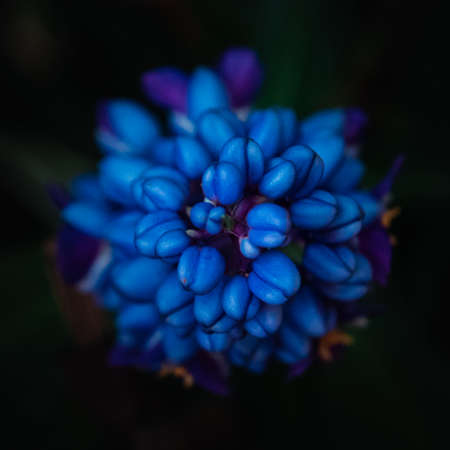 A macro shot of a blue hyacinth bloom. Shallow depth of field.