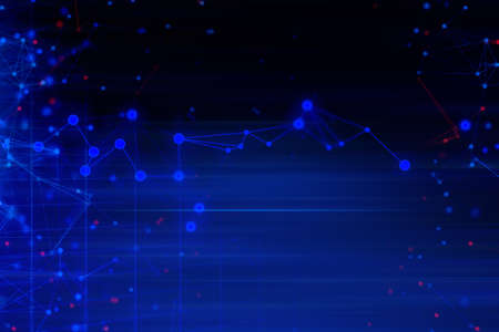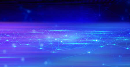 Digital background with moving glowing particles. Futuristic hi-tech illustration. Concept of data transfer in cyberspace. Big data visualization. 3d rendering.