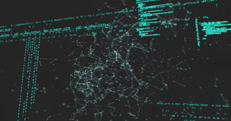 Image of digital network with cyber security text overlay, highlighting data protection. technology, internet, encryption, firewall, safety, defense