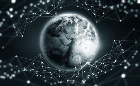 Global world network and telecommunication on earth cryptocurrency and blockchain and IoT. Communication technology for internet business.
