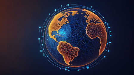 Abstract illustration of a D earth with network lines spreading across it, representing global digital communication.