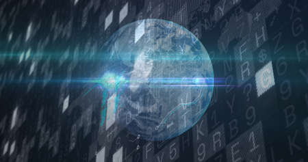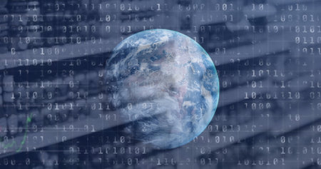 Image of binary coding numbers changing over globe. digital interface global connection and communication concept digitally generated image.