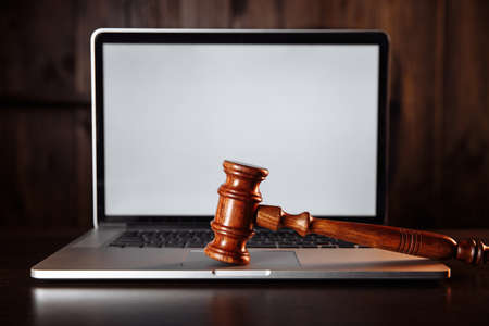 Judge gavel on a laptop. Concept of internet crime. Law and Justice