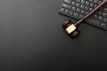 Judge gavel with computer keyboard. Concept of internet crime. Copy space for text