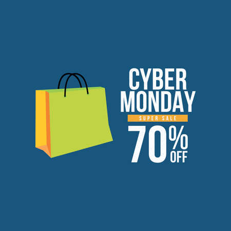 Paper shopping bag with text CYBER MONDAY on color background