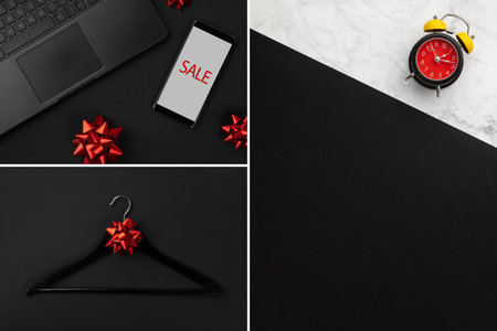 Collage with promotion composition for Black friday sale. Shopping sale concept