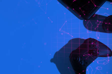 technology device joystick controller electronic for playing game with online network connection in esport tournament challenge concept