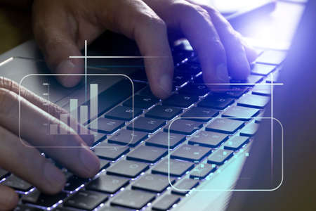 laptop computer work for business analysis with graph