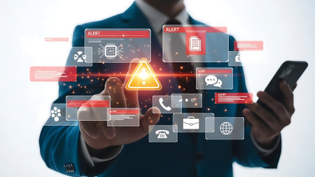 Various alert notification on digital device concept background. Get notification from file, phone, AI. Security system concept with many alert messages.
