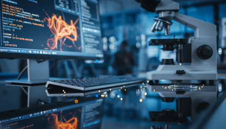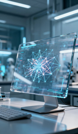 Visual representation of AI-enhanced biology research in a futuristic lab setting