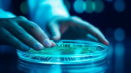 This captivating display features glowing bacteria under UV light during a lab experiment on bioluminescence and microbes.